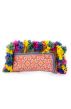 A gorgeous natural weave fabric clutch bag handmade with colorful pom pom's. This boho bag is the perfect clutch purse for all festive occasions. Straps:black cotton wristletDimensions:Approx Length: 11" (28cm)Approx Height: 7" (17cm)